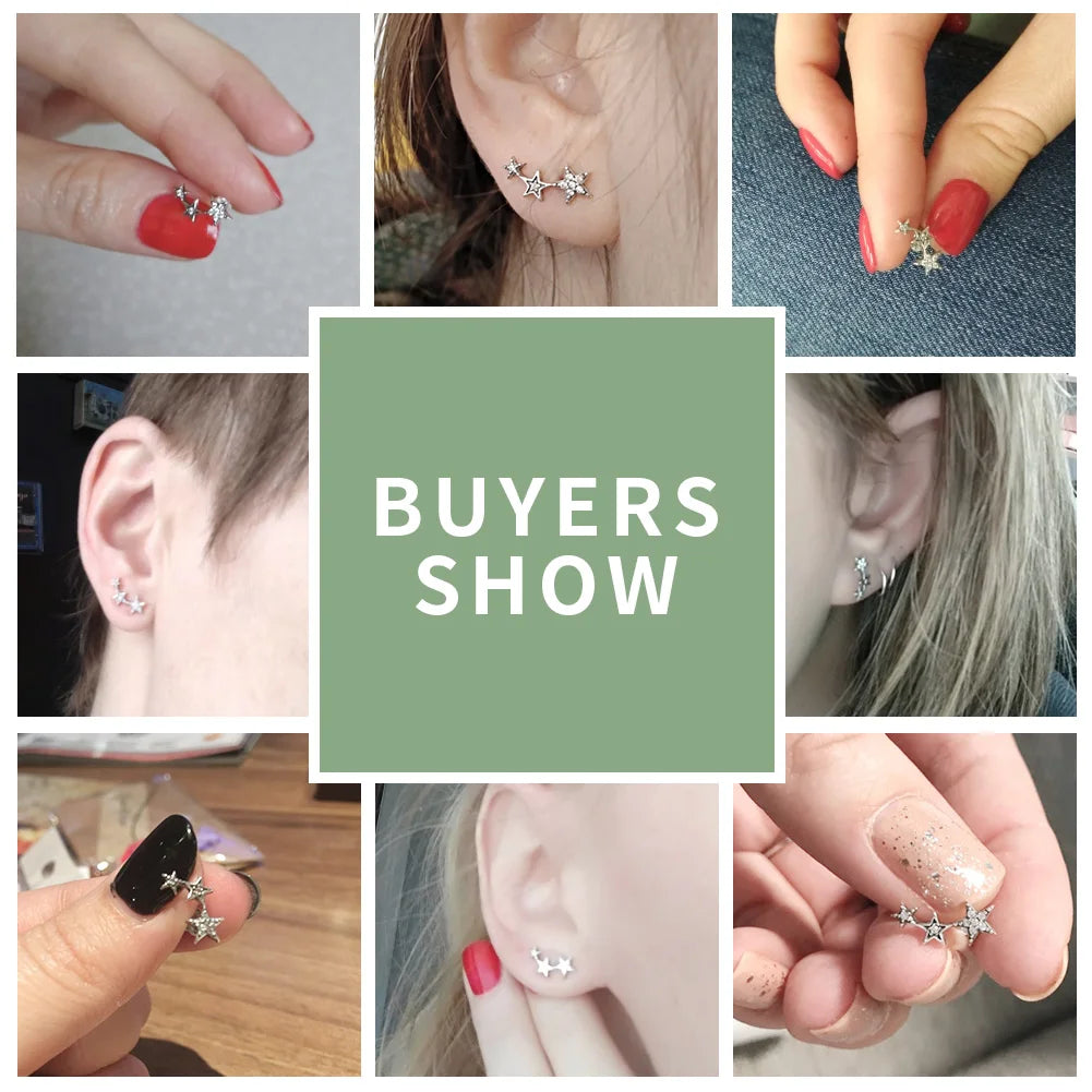 Authentic 925 Sterling Silver Sparkling Little Star Stackable Star Stud Earrings