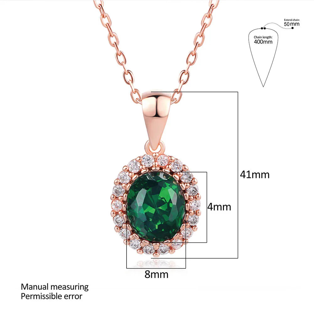 Elegant Created Rose Gold Color Green Crystal Pendant Necklace