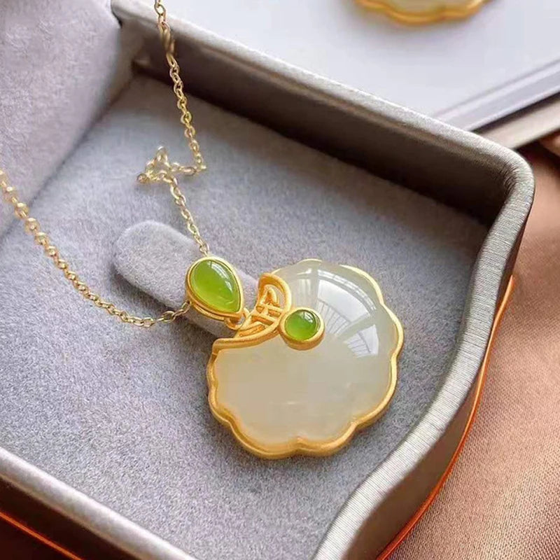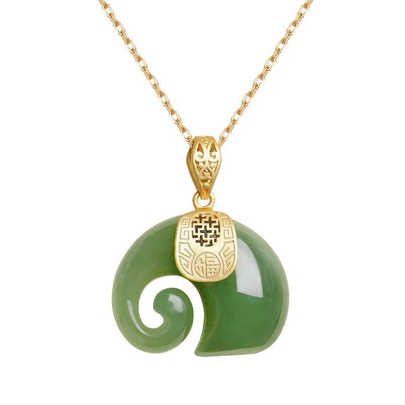 Gold Plated Hetian Jade Elephant Pendant Necklace