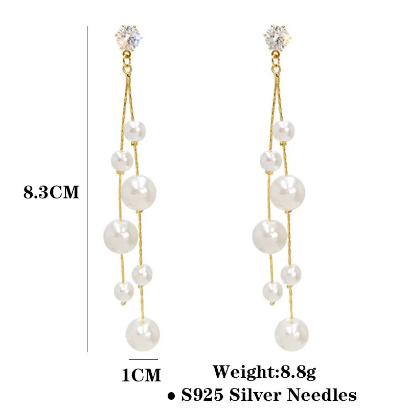 Elevate your style with these exquisite Long Imitation Pearl Tassel Earrings. Made with high-quality Zinc Alloy material, these earrings are durable and trendy. With a water drop shape and stylish design, these earrings are perfect for any fashion-forward woman. They also make a great addition to your jewelry collection. Available in Mainland China, these earrings are perfect for women of all ages. Wear them to any occasion and turn heads with their modern and chic look. You can even find them at the popular online shop, Aliexpress. Get these earrings today and make a fashionable statement with 925 silver needles.