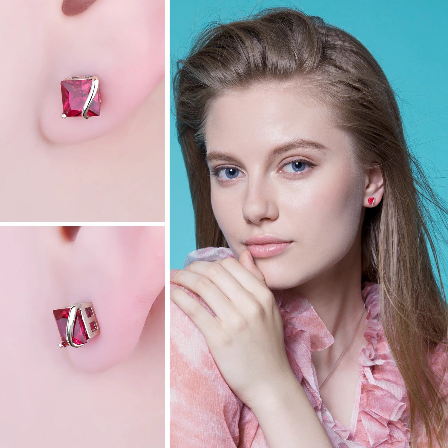 Red Ruby 925 Sterling Silver Stud Earrings